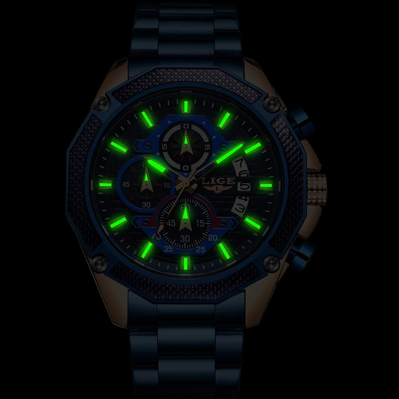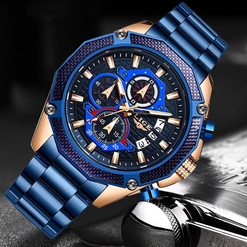 LIGE 2019 New Fashion Mens Watches with Stainless Steel Top Brand Luxury Sports Chronograph Quartz